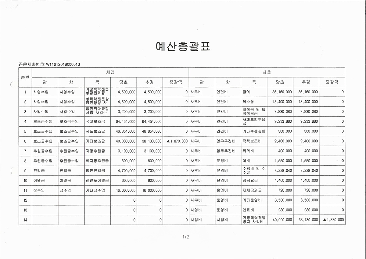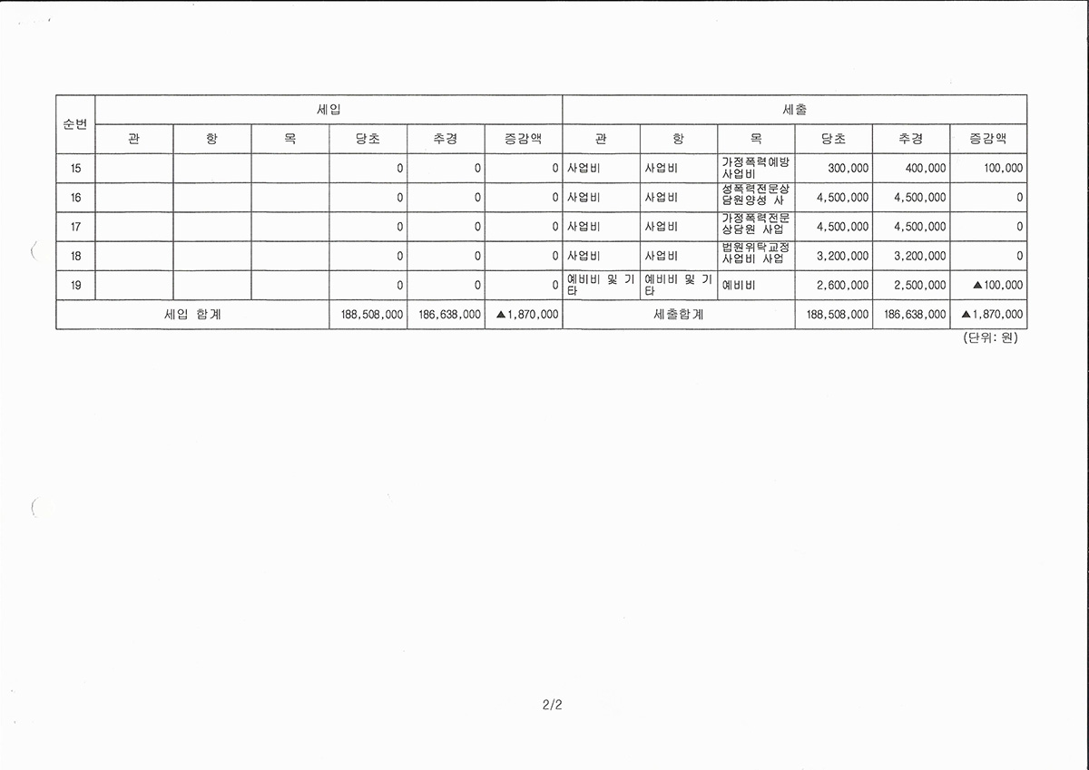 2018년 가정폭력상담소 추경예산서